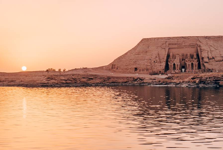 Auf dem Programm: die Tempel von Abu Simbel. 280?km südlich von Assuan, im Herzen Nubiens, wurden die Tempel zu Ehren des grossen Pharaos Ramses?II. in zwei Sandsteinfelsen gehauen, mit Blick auf den Nil. Dieses eindrucksvolle Ensemble verherrlichte die Macht des Pharaos gegenüber den Völkern des Südens und bekräftigte Ägyptens Vormachtstellung. Ein sagenumwobener Ort, den Sie bei einer privaten Führung entdecken. Im Anschluss an den Besuch nehmen Sie ein nubisches Mittagessen ein.
