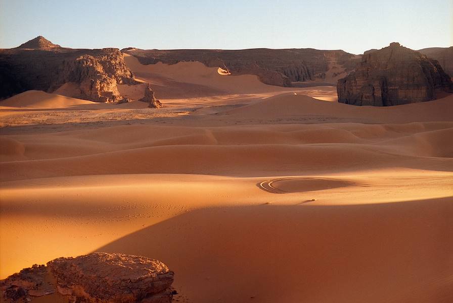 Transfer zu den Dünen von Chegaga. Das Erg ist weit und einsam, wild, und die Dünen sind 300 m hoch. Das ist beeindruckend. Die Wüste, wie man sie sich vorstellt, faszinierend und beunruhigend zugleich. Mineralisch und bitter, veränderlich, verwirrend. Eine beeindruckende Erfahrung.