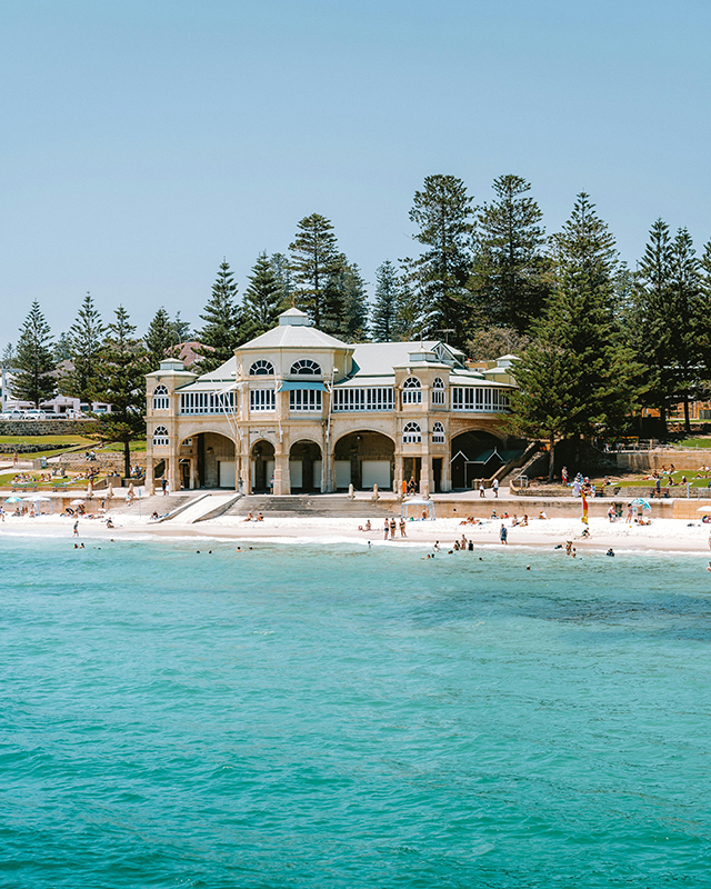 Dans un pays où plus de 80 % de la population vit à moins de 50 kilomètres de l’océan, la plage ne se visite pas, elle se pratique. Elle est l’expression d’un certain art de vivre : simple, vaste, solaire. De toutes les plages de Perth, Cottesloe est la plus iconique. Bordée de pins centenaires et de pelouses douces, elle mêle surfeurs, baigneurs, flâneurs et familles en pique-nique. Le rivage y est doux, les vagues accueillantes, parfaites pour une baignade sans heurt. Sur l’esplanade, les passants flânent, un café glacé à la main, les pieds nus dans les sandales. Face à l’océan Indien, l’ancien salon de thé Indiana Tea House dresse sa silhouette emblématique au-dessus de la plage depuis 1910. On y commande un verre de vin blanc, en regardant les surfeurs attendre la vague parfaite.