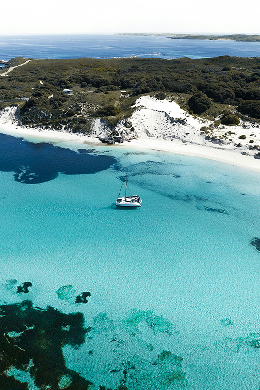 Les Aussies l’appellent « Rotto ». On rejoint Rottnest Island en ferry. Après 40 minutes de traversée, la terre apparaît : une île sauvage et lumineuse posée sur le bleu profond de l’océan Indien. Thomson Bay est bien plus qu’un simple point d’arrivée pour les ferries. C’est une baie paisible, un front de mer animé, un monde à part où les journées s’étirent au rythme des marées. Les bateaux tanguent doucement au mouillage, les enfants courent pieds nus sur les planches du quai. On peut déjeuner face à l’océan et goûter la spécialité locale, le hamburger au homard. Ici ; la voiture est prohibée ; c’est à vélo que l’on file ensuite à travers les forêts d’arbres à thé, la brousse et les marais, les lacs salés. À chaque virage, une nouvelle baie se dévoile : The Basin et sa piscine naturelle d’eau limpide, Little Parakeet Bay, plus sauvage, ourlée de rochers clairs, ou Salmon Bay, bordée de dunes blanches. Le sable est d’un blanc presque irréel, l’eau hésite entre turquoise et saphir, les vagues sont douces. Au détour d’un sentier, un quokka vous regarde, immobile, le museau levé, les yeux brillants. Ces petits marsupiaux au célèbre sourire investissent toute l’île, curieux mais tranquilles, comme les gardiens joyeux de ce sanctuaire. Après une plongée masque et tuba dans les criques turquoise – les fonds marins sont un jardin de coraux et de poissons colorés – on rejoint le vieux phare de Wadjemup, perché sur une colline. La vue embrasse toute l’île : les plages dentelées, les lacs salés à l’intérieur des terres, les bandes de récif au loin.