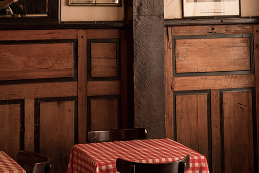 Ce restaurant est une institution où l’on mange et boit gaiement. Toute la culture populaire chilienne s’étale sur les murs recouverts d’affiches publicitaires d’un autre temps, de photos d’équipes de football jaunies et de dictons chiliens calligraphiés. On y dévore de délicieux plats traditionnels, comme le chupe de jaiba (gratin de crabe) ou la mechada italiana (viande de bœuf effilochée) en buvant une chope de bière bien fraîche ou un bon verre de cabernet sauvignon. Plus la soirée avance et plus l’ambiance s’électrise.