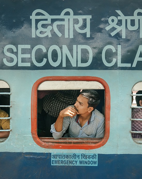 Le voyage en train est le mode de déplacement favori des Indiens. La Indian Railways emploie 1,5 million de personnes et transporte huit milliards de passagers par an ! À elle seule, la gare VT (Victoria Terminus) de Mumbai (ex Bombay) charrie trois millions de voyageurs chaque jour – les trains bondés y circulent à la cadence des métros parisiens. Les Indiens empruntent le train pour leurs trajets quotidiens comme pour leurs déplacements liés aux pèlerinages, fêtes et autres célébrations.