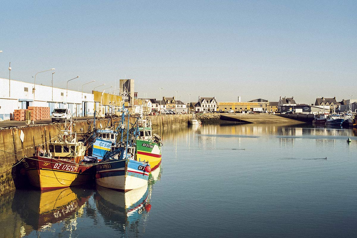 Le parking du port est désert. Sous la lumière automnale, des serveuses, lunettes de soleil sur le nez, rangent la terrasse d’une crêperie-bar qui semble avoir bien travaillé ce midi. Il fait chaud. Le voyageur de passage ne pourrait pas supposer qu’il y a à peine quatre jours, c’était la tempête. La mer démontée, le ciel chargé, les filets vides, les pêcheurs muets de déception. Aujourd’hui, l’horizon est d’un calme sourd. Les bateaux accostés bougent à peine. Une camionnette blanche pile sur le bitume. Sur le flanc, on peut lire “France Ikejime”.