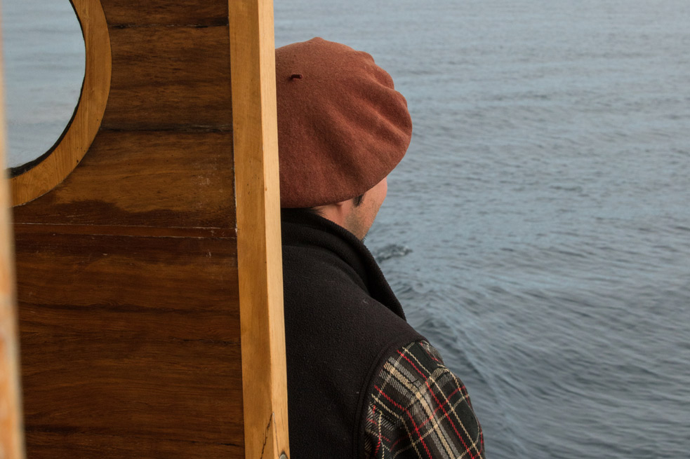On emporte ses paroles avec nous à bord du Williche. Le bateau est l’expression d’un art chilote, celui des charpentiers de l’île, les “carpinteros de ribera”. Il ne reste à Chiloé que dix ateliers de construction de bateaux. À la tête de l’un d’eux, David Pachuque répète depuis ses 15 ans les gestes appris de son père et de son grand-père. Dans son atelier sur pilotis, un hangar ouvert aux vents, trois bateaux en devenir, châssis de bois aux proportions magistrales. Il les a construits en suivant le tracé de courbes esquissées dans sa tête, songeant à la façon dont chaque bateau fendrait les flots.