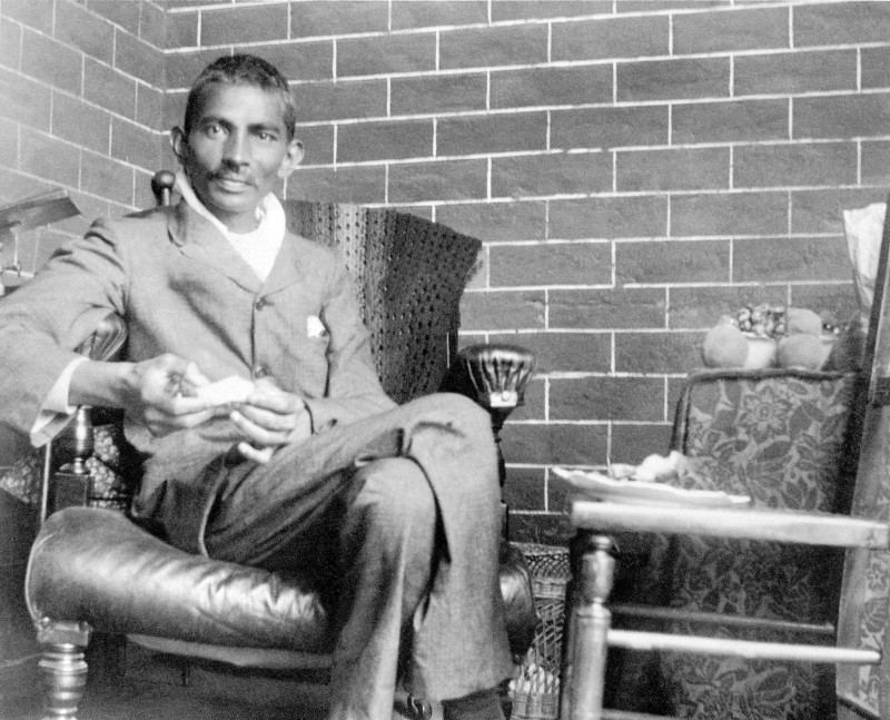 Lorsqu’il foule le sol sud africain pour la première fois, en 1893, Mohandas Gandhi est un jeune homme timide, fraîchement diplômé du barreau de Londres. La discrimination raciale qu’il va combattre auprès de la communauté indienne du pays et expérimenter lui-même, notamment à la gare de Pietermaritzburg - Gandhi est débarqué du train pour avoir défendu ses droits à voyager dans la classe réservée aux blancs - va progressivement transformer son mode de pensée et d’action. «Jusqu’en 1906, je croyais en la raison. J’étais un réformiste appliqué » expliquera le père de l’indépendance indienne «… Mais je constatais que la raison échouait à faire impression lorsque le moment critique arriva en Afrique du Sud…J’eu alors le choix de me rallier à la violence ou de trouver une autre méthode… Il me vint à l’esprit que nous devions refuser d’obéir à des lois dégradantes et les laisser nous mettre en prison. Cela revenait à l’équivalent spirituel de la guerre ». Une guerre pacifiste dans laquelle Mohandas Gandhi trouvera de nombreux alliés.