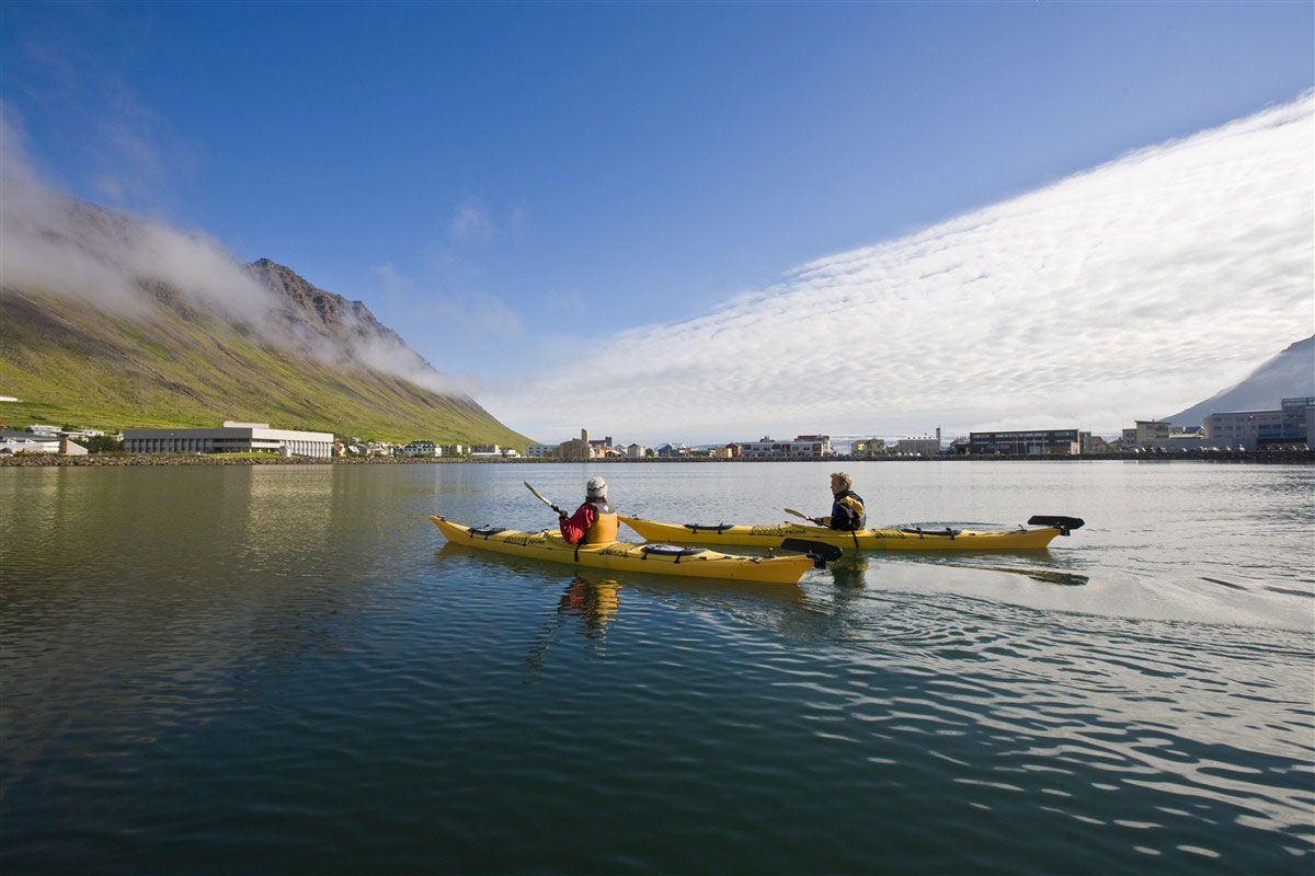 Son nom signifie littéralement "le profond fjord glacé". Et pour cause, l’Ísafjörður représente l’un des fjords les plus profonds d’Islande. Au nord-ouest de l’île, le bras de mer s’avance sur près de 120 kilomètres à l’intérieur des terres. Il se divise en une multitude d’embranchements et de baies, encerclés de montagnes planes aux cimes enneigées. Là encore, le kayak est à privilégier pour découvrir les paysages depuis l’eau – l’occasion aussi de croiser des phoques qui se prélassent ici en nombre. Au milieu du fjord, l’île de Vigur est une oasis verdoyante longue de 2 kilomètres et large de 300 mètres peuplée de milliers d'oiseaux – macareux, guillemots, sternes arctique et eiders, dont on récolte le duvet pour les édredons.