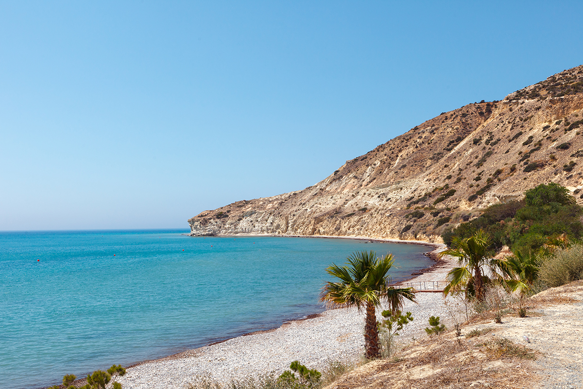 À proximité de la ville de Pissouri, sur la côte sud, se trouve l’un des sites les plus emblématiques de Chypre, de très haute importance mythologique. Il s’agit d’une jolie plage de galets d’origine volcanique baignée d'eaux turquoise et étonnamment paisible. Ce qui fait la particularité du lieu n’est pas uniquement sa beauté mais aussi ce rocher flottant à quelques mètres de la plage : le célèbre Pétra tou Romioú. Ce dernier marque le lieu de naissance d’Aphrodite, déesse de l’amour et de la fertilité, née de l’écume de la mer. Il doit cependant son nom – littéralement le « rocher du Grec » – à la légende du héros byzantin Digénis Akritas qui, en voulant protéger l’île de l’invasion arabe, aurait jeté cette roche à l’ennemi. Des légendes plus récentes prétendent que faire trois fois le tour du rocher à la nage garantirait chance, amour et beauté éternelle. On risquera surtout de boire la tasse, le courant étant parfois assez fort sur ce bout de littoral. Du côté de Pissouri et du cap Aspro, d’autres plages, aux belles falaises immaculées et aux eaux tout aussi limpides, promettent des baignades plus sereines.