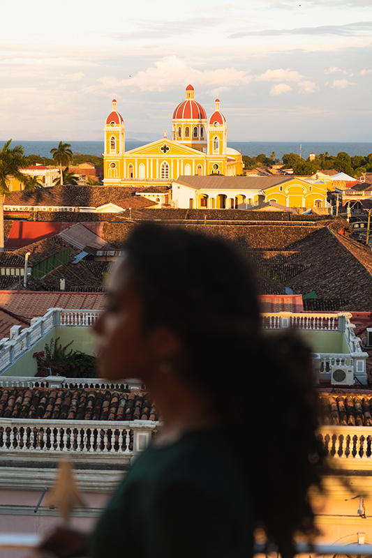 Joyau colonial sur les rives du lac Cocibolca, Granada, « la grande sultane », a été fondée par le conquistador Francisco Hernandez de Cordobas la même année que Léon. Si Léon, berceau historique du sandinisme, est une ville rebelle, Granada est plus sage. Au premier abord moins expansive, plus discrète que sa sœur jumelle, c’est une cité élégante. Sa place centrale est rafraîchie de fontaines et de palmiers. Un belvédère abrite les orchestres ; les vendeurs de glace ambulants et les cireurs de chaussures se fraient un chemin sous les arcades mauresques. On aime son riche patrimoine colonial, ses maisons aux toits de tuile rouge, son couvent de San Francisco égayé de bleu ciel et jaune vif. Du haut du clocher usé par les intempéries de l’église de la Merced, on voit se dresser l’imposant sommet du volcan Mombacho.