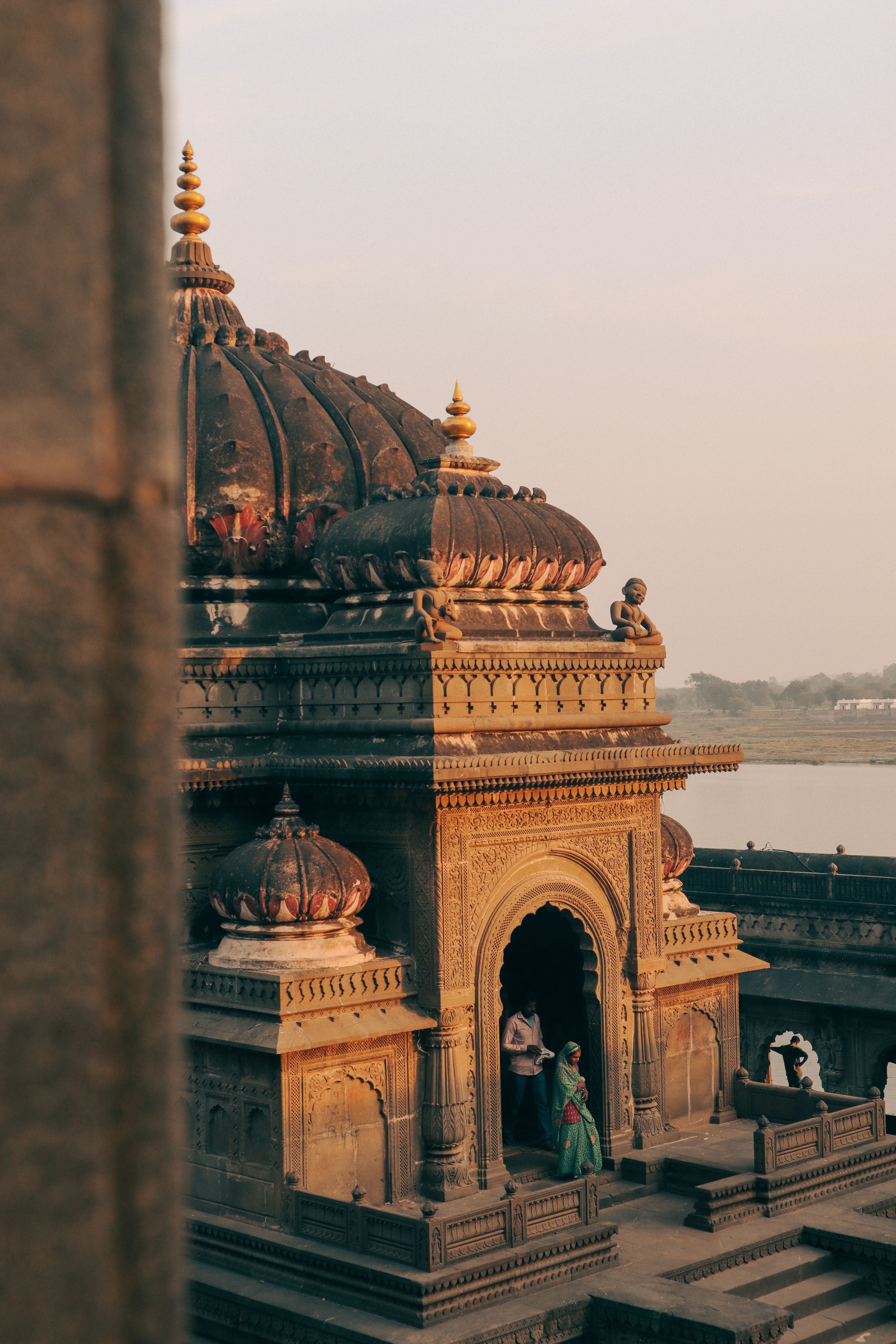 Reprise de la course avec le soleil. Si les temples sont impressionnants, la lumière caressant la pierre et les visages des croyants ajoute encore au spectacle. Sur le quai, une embarcation nous attend. Le long de l’eau, certains fidèles s’immergent bruyamment, d’autres sont occupés à déposer délicatement une bougie sur l’eau. L’atmosphère est chargée d’émotions, le moment suspendu. Au retour, les jardins de l’hôtel prolongent le rêve à l’aide d’une centaine de bougies. À table, autour de mon premier thali, il est question du programme du lendemain : rejoindre en day-trip la cité fortifiée de Mândû, ex-capitale régionale blottie dans les monts Vindhya. Prisée des empereurs moghols, piquée de mosquées et de bâolis, elle renferme la tombe de marbre blanc de Hoshang Shâh qui aurait inspiré le Taj Mahal. De retour à Maheshwar, il faut se rendre à l’évidence : la petite sœur de Varanasi nous aura converti sans effort.