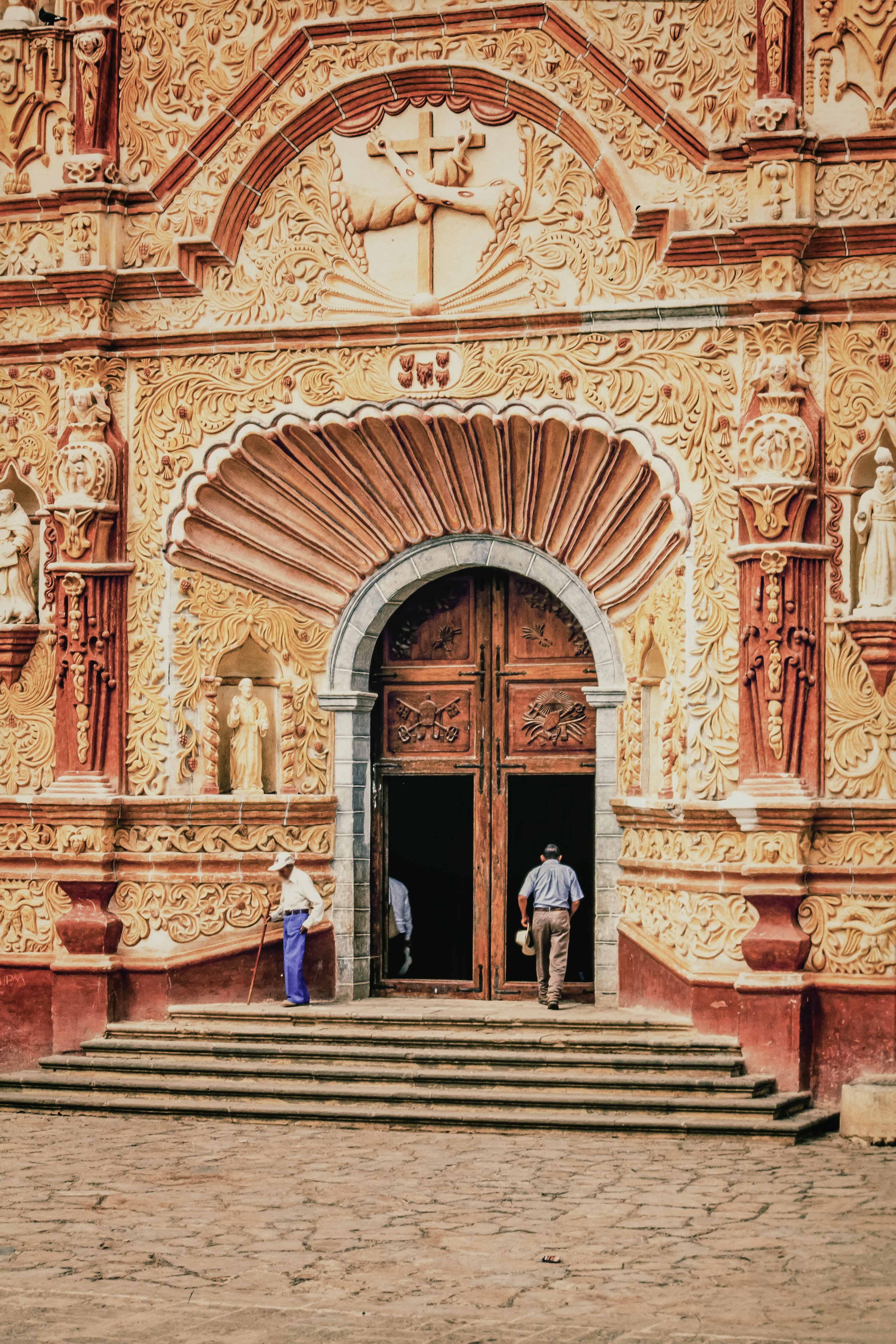 Éveillé tôt, je regarde le jour se lever sur la montagne. Nuages. Bruits mouillés. Des oiseaux passent, noirs sur le ciel gris. Le couvert forestier est très dense. Pas de grande animation chromatique mais l’avènement calme d’un matin. D’un coup de voiture, on va visiter des missions franciscaines que l’Unesco a inscrites au patrimoine mondial – Santiago étant la première des cinq. Cela nous ramène au siècle des Lumières. En route, le vaste mouvement de la montagne, des ligne simples et pures, plans et arrière-plans estompés gris-bleu. Voilà San Francisco del Valle de Tilaco. Ce qui frappe, la façade. Faite pour ça : frapper. Des registres de conques, emblèmes, saints, un décor végétal proliférant. Les fins et les moyens sont exposés sans détours, mais dans une langue symbolique apte à réduire le culture gap entre Indiens et missionnaires. Il y a du sermon en ronde-bosse là-dedans. Les Indiens d’abord restèrent à l’extérieur du temple, vieille attitude révérencielle. Et puis on entre – on est un voyageur. C’est simple et digne. La douleur et le sang, bien sûr, avec pourtant une surprenante élégance. Le pathétique a de la tenue ici. À Santa Maria del Agua de Landa de Matamoros, Nuestra Senora de la Soledad, seule en effet dans la niche, est d’un noir impeccable. De Matamoros, tueur de Maures, il y a dans ce nom un transfert d’aversion. Le classement Unesco a fourni de quoi entretenir les édifices. Santa Maria de Landa est bien jolie, avec sa façade vieux rose, ses murs crème et le ciel azur au-dessus. Nuestra Senora de Guadalupe ? Elle ne manque jamais. Une telle ubiquité lui est une discrétion paradoxale : elle s’efface dans la permanence de cette exposition.