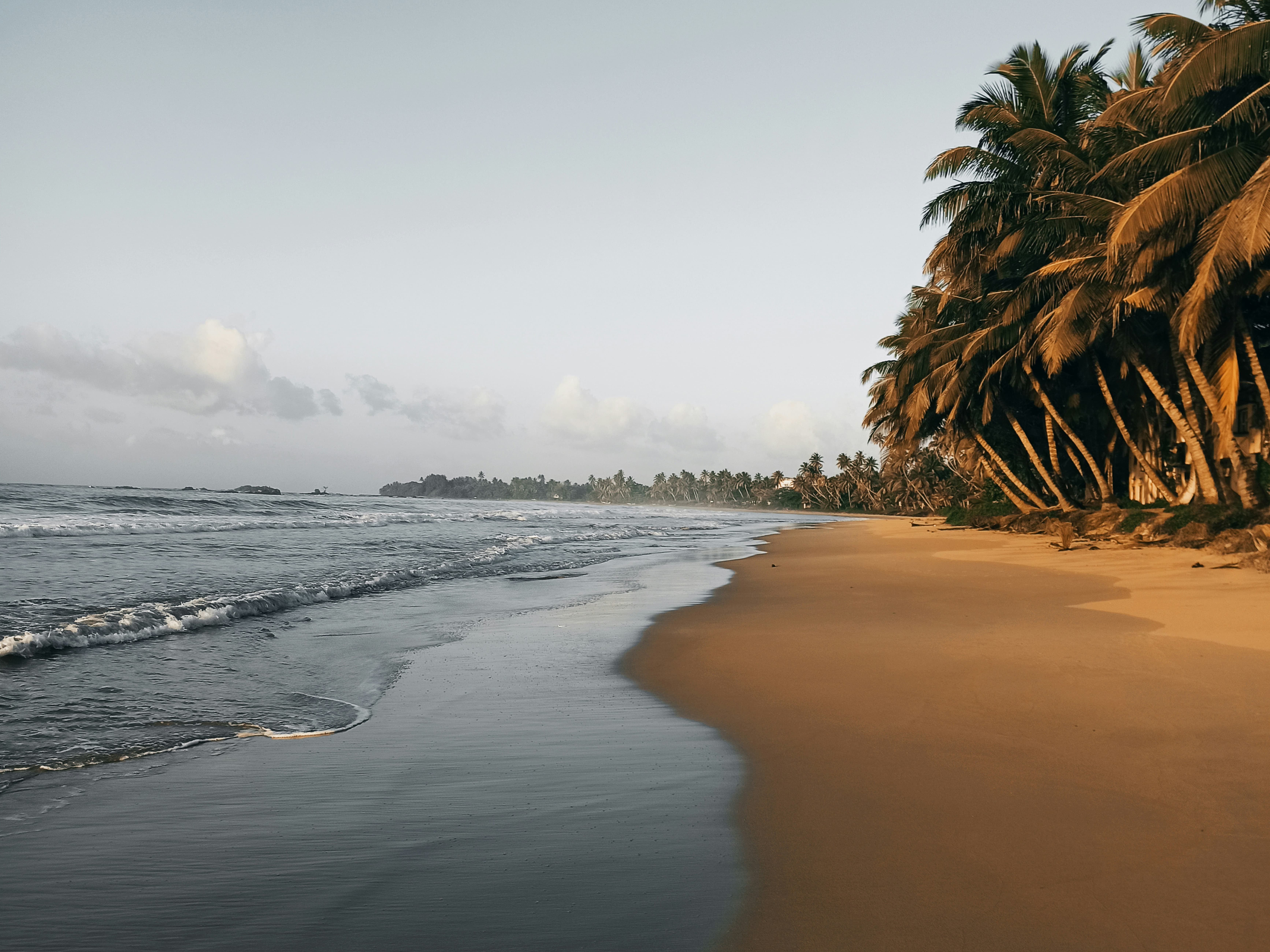 À seulement une demi-heure au sud du tumulte de Colombo, Mount Lavinia est la plage la plus accessible, la plus fréquentée et la plus vivante. On y vient pour une baignade rapide, un coucher de soleil les pieds dans le sable. La plage s’étire en long ruban doré, parallèle à la ligne de chemin de fer. Le train passe à quelques mètres, bringuebalant, emportant des voyageurs accoudés aux portières ouvertes. Scène typiquement sri-lankaise : l’horizon de l’océan d’un côté, les wagons bondés de l’autre et, entre les deux, la bande de sable où la ville s’accorde une pause. Le week-end, les enfants courent dans les vagues et les vendeurs ambulants proposent du manioc frit, des mangues au piment, des cacahuètes salées. L’air sent le sel, les épices et l’huile chaude. C’est LA plage pour prendre le pouls du Sri Lanka urbain – au bord de la mer.