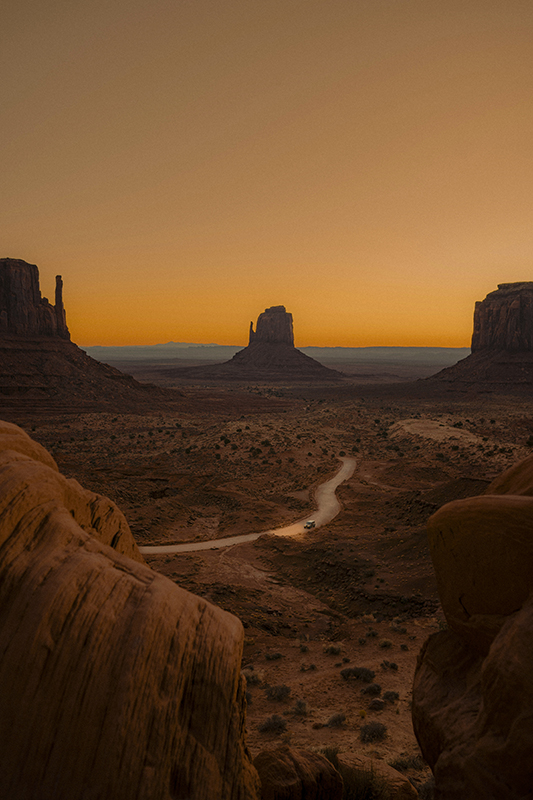 Tandis que nos amis partent pour le parc de Canyonlands et ses paysages lunaires, nous prenons place dans un petit raft pour descendre le Colorado, entourés par les immenses falaises rouges du canyon. Les enfants sont étonnés par la couleur de l’eau rendue brune par le limon. Quand on se baigne, on ne voit plus son corps, trop bizarre ! Sans parler des rapides, quelles sensations ! À peine remis de nos émotions, nous prenons la direction de l’emblématique Monument Valley, traçant notre route à travers le “painted desert”. Un tableau minéral rouge, orange, rose, gris. Ce qui impressionne vraiment les enfants, ce sont ces énormes monolithes orange qui se dessinent à l’horizon. Cela nous évoque les aventures de John Ford et John Wayne. John qui ? Depuis, les Indiens ont pris leur revanche sur les cow- boys et le sanctuaire est désormais géré par les Navajos. La petite s’interroge : mais qui les a fabriqués ? Le guide, membre de la tribu, nous mène jusqu’à des vestiges du peuple des Anasazis et de mystérieux lieux de cérémonie – de vraies histoires d’Indiens.