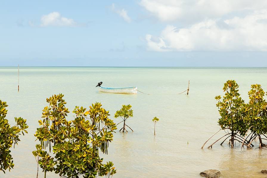 On jette l'ancre au large de Half Moon Caye îlot paradisiaque portant bien son nom. Il s'agit en effet d'un croissant - non pas de lune, mais de nature préservée -, et de la plus ancienne zone marine protégée d'Amérique centrale. On s'y baigne dans des eaux translucides révélant de formidables fonds marins - raies léopard, tortues, éponges de mer, coraux, anguilles... - que l'on explore à sa guise avec masque, palmes et tuba. Sur terre, les plages dorées laissent la place à une merveilleuse forêt littorale où l'on se délecte des allées et venues des fous à pieds rouges, pêcheurs émérites plongeant dans la mer à une vitesse folle pour faire le plein de calamars et petits poissons.