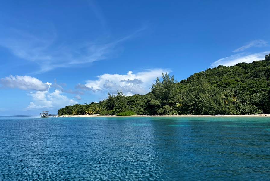 Escale continentale dans le parc national Cuero y Salado, à l'ouest de La Ceiba. Situé aux estuaires des fleuves San Juan, Cuero et Salado, ce véritable refuge de biodiversité est un paradis pour l'observation de la faune et de la flore. Mangroves et forêts fourmillent de vie et, si vous êtes chanceux, vous pourrez surprendre le passage discret au ras de l'eau d'un caïman ou d'une tortue, le vol coloré des oiseaux qui peuplent la canopée ou la danse agile des singes passant d'arbre en arbre... De retour sur le vaisseau-mère, on prend ensuite la direction de Water Caye, îlot corallien faisant partie des îles de la Baie. Désert, il est baigné d'eaux turquoise et ceint de plages de sable blanc où cocotiers et palmiers projettent une ombre bienvenue. La baignade en ces circonstances est particulièrement douce.