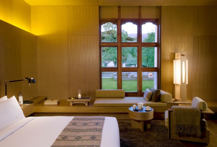 Route pour Paro par le col du Dochu. La vue sur les sommets de l'Himalaya est superbe. Installation pour deux nuits à l'Amankora Paro. Les suites sont splendides, mariant bois clairs et sombres, vous êtes logés dans des maisons de pierres évoquant le style local. Le spa est lui aussi remarquable et ne saurait être oublié. Vous l'aurez compris : au pays du Bonheur National Brut, Aman a trouvé son royaume.