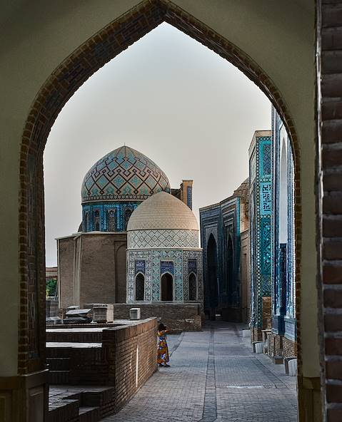 Il est des villes dont la seule évocation fait rêver et initie le désir d’ailleurs, depuis l’enfance, depuis toujours – la sonorité d’un nom, une carte postale jaunie, une croix sur un globe terrestre… Samarcande est de celles-là. Il faut imaginer le lacis des ruelles de la vieille ville : on cheminait par les bazars, passages couverts, venelles étroites aux odeurs de cuir et de thé, artères sombres et sinueuses qui convergeaient vers le Régistan ("la place de sable" en persan). Alors l’espace s’agrandissait, le ciel et les coupoles bleues se matérialisaient tel un mirage. Comme à l'âge d'or des caravanes chamelières, on rejoint la cité prudemment, sans se presser. En guise de chargement, non plus des marchandises mais des attentes folles, un esprit d'explorateur. Le Kirghizistan s'impose comme le premier chapitre de ce périple au lent cours. À peine sorti de Bichkek, la capitale, le regard est aimanté par les sommets enneigés et les corniches couchées sur le vide. Bientôt, le lac Song Kul se révèle, scintillant et cerclé de montagnes opalescentes. Sur la steppe, quelques yourtes regroupées par famille. Puis vient le lac Issy Kul, le "lac chaud" pas si chaud que ça, même l'été. L'un des plus vieux du monde en tout cas, supervisé par les Tian Shan. En longeant sa rive, on finit par rencontrer le Kazakhstan. Des lacs, ceux de Kolsai cette fois, limitent le dépaysement et confirment que ces contrées sont bien dans la continuité les unes des autres. Avant de gagner Almaty, la plus grande ville kazakhe, lovée sur les contreforts des monts Trans-Ili, passage par Jarkent (pour un bol de culture) et le parc national Altyn Emel (pour un bol de nature). De là, on glisse facilement vers l'Ouzbékistan voisin et notamment vers Tachkent, la "citadelle de pierre", sa capitale. Dressée fièrement sur le sable rouge, Boukhara, ville-oasis du désert du Kyzylkoum, prend sa suite. Et, Samarcande – petites maisons en torchis, brise qui amène les premières rumeurs de la ville – vient, comme prévu, clôturer l'épopée en grande pompe.