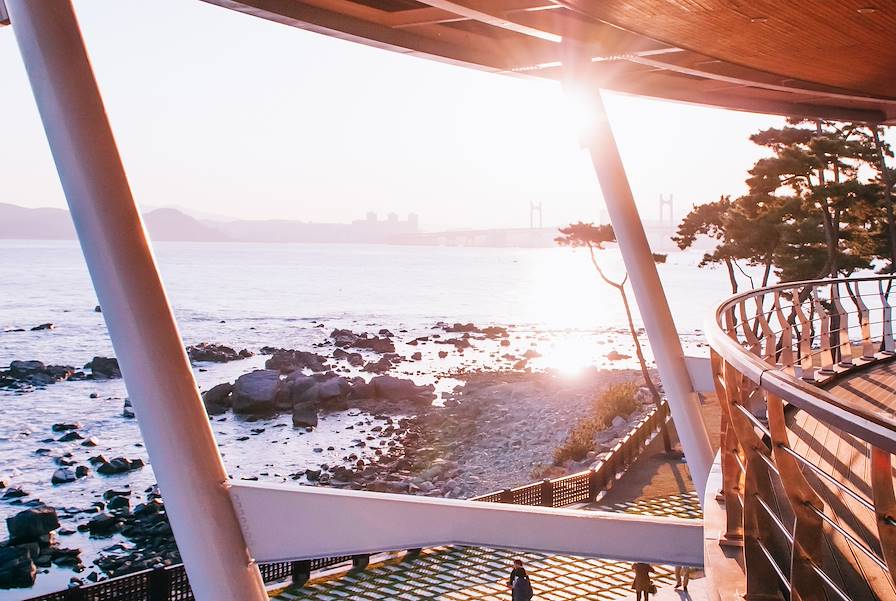 Embarquement à bord du KTX, le TGV coréen, pour rejoindre Busan, au sud-est du pays. Installation pour deux nuits du côté de la marina. La grande tour vitrée fait plus qu’habiter le port : elle le domine. Sans surprise, le panorama depuis l’intérieur est privilégié et les chambres l’ont bien compris avec de grandes ouvertures. Elles arborent également un parquet en chêne français impeccable et des teintes sobres, dans l’air du temps. On passe des moments délicieux dans cet espace, à vaquer du canapé à la salle de bains suréquipée. Pour poursuivre sur le thème du bien-être, direction le joli spa ou la longue piscine intérieure. Le soir venu, les options pour dîner ne manquent pas : cuisine italienne, fruits de mer ou plats de viande. Les équipements sont là, le confort et le design aussi : un sans-faute.
