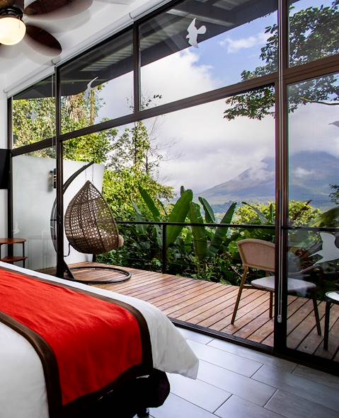Prise en charge de la voiture de location et route vers le parc national du volcan Arenal près duquel vous vous installez pour deux nuits au sein d'un lodge bien pensé, à la jolie décoration contemporaine. De grandes baies vitrées ouvrent votre chambre sur l'extérieur et votre terrasse privée. De là, la vue sur le volcan et la forêt est absolument magnifique. De quoi poursuivre l'expérience de l'observation, même au retour d'une balade. Autour du lodge, la nature est reine et s’étend sur 27 hectares de réserve privée. À deux pas se trouvent les ponts suspendus qui semblent flotter au-dessus de la canopée. À tout moment, vous pouvez tomber nez à nez avec les autres habitants des lieux : coatis, singes, paresseux…