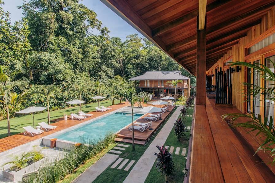 Transfert privé jusqu'à l'aéroport et vol rapide pour l'Isla Colón, dans l'archipel de Bocas del Toro. À l'arrivée, nouveau transfert privé et installation pour trois nuits au sein d'un véritable refuge tropical, un petit hôtel d'une dizaine de chambres s'alignant le long d'une piscine prometteuse. Les intérieurs font la part belle aux matériaux naturels (bois, paille) et aux tons clairs. De retour en extérieur, les transats disposés autour du bassin sont une invitation que l'on ne tarde pas à saisir, à moins que l'on ne préfère gagner la plage, à quelques mètres de là. Un seul impératif : revenir à l'heure des repas pour goûter à la table de l'hôtel.