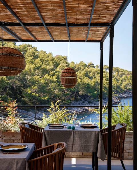 Accueil francophone à l'aéroport de Split par notre représentant local, assistance avec les bagages et transfert en véhicule privé jusqu'au port. Puis, traversée en hydroglisseur pour l'île de Hvar où un nouveau transfert privé vous mène du port jusqu'à l'hôtel. Installation pour trois nuits dans une ancienne ferme superbement restaurée, posée au bord d'une petite crique où les bleus et les verts se composent de façon changeante. Le bon esprit rustique chic a soufflé et le résultat, enveloppé de pins et de maquis, est très réussi. Pierre, bois, verre pour les bâtiments ; lin et coton pour la literie et le linge de table – tout est parfait. Les chambres, lumineuses, articulent impressions de vacances et émotions esthétiques (en plus d'être parfaites d'un point de vue pratique). Au nombre de quinze, elles ouvrent comme on l'espérait sur la baie. Le jardin aromatique descend vers la mer et ménage des petits coins intimes sous les oliviers. Des chaises longues attendent à fleur d'eau. On prend place sur les terrasses pour l'apéritif. Ceviche, tataki et poulpe se savourent sous les arbres. Dans la cave, bouteilles de France, d'Italie et de Croatie. Un petit spa propose des soins personnalisés professionnels et attentifs. Depuis les pontons, on bronze ou on plonge, c'est selon.