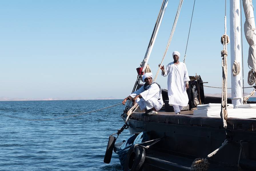 Elégante dahabieh, La Flâneuse est flanquée à la proue comme à la poupe de deux voiles latines. Sept cabines seulement (dont une grande suite à l'arrière avec terrasse privée) aux tons pastel rehaussés d’objets chinés, un salon intimiste où partager une décoction d’hibiscus, un sundeck bercé par l’appel des muezzins - le cocon flottant idéal. Ce type d’embarcation, mêlant confort et intimité, était déjà utilisé par les pharaons il y a près de cinq millénaires. Votre maison flottante glisse sur l’eau à petite vitesse au rythme langoureux des vents, ce qui permet de profiter pleinement du spectacle des rives, de lézarder sans à-coups sur le pont, d’aborder là où les grands bateaux ne peuvent aller. D’ailleurs, cela nécessite quelques arrangements, notamment l’aide d’un remorqueur lors des mouillages et en cas de vents contraires.