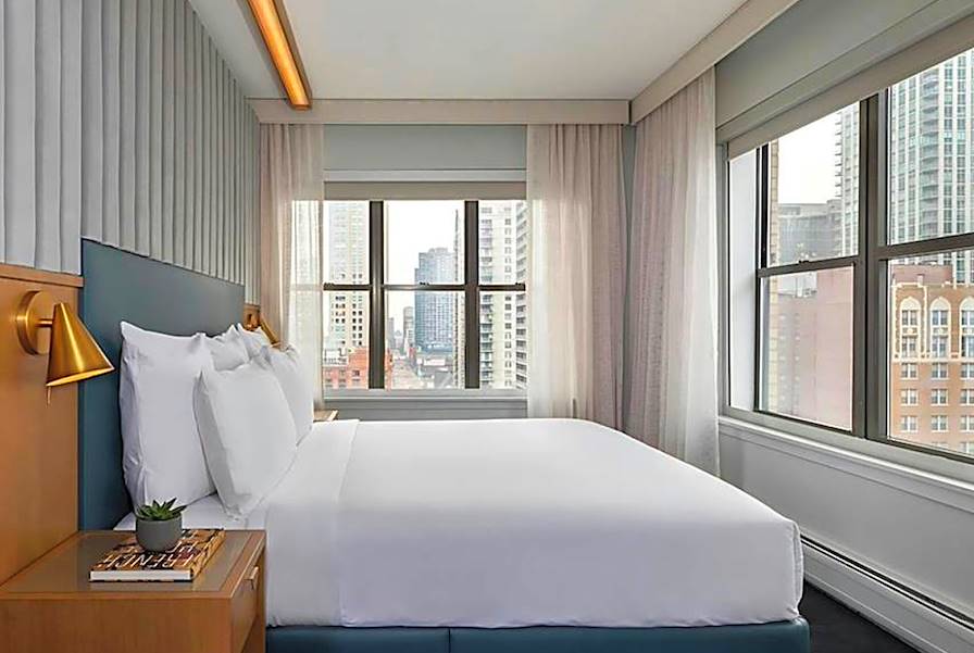 À l'arrivée, transfert privé et installation pour trois nuits au nord de la rivière Chicago. Vous logez dans un hôtel moderne à l'âme artistique et colorée. Des œuvres d'art contemporain émaillent les espaces communs au look tendance. Les chambres, aménagées avec plus de sobriété, conservent une esthétique élégante grâce à des tons chaleureux et des objets design. Une galerie d'art abrite des expositions temporaires d'artistes renommés. L'établissement accueille par ailleurs toutes sortes d'événements – spectacle de stand up, conférences, concerts de jazz...