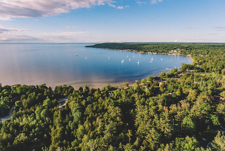 À ne pas manquer - Une journée à travers la péninsule. Cap sur le Peninsula State Park avec la Eagle Tower (pour le panorama), Nicolet Beach et le phare d'Eagle Bluff (visite à l'occasion possible avec des bénévoles). On remonte ensuite par Sister Bay, Elison Bay, Gills Rock et Northpoint via une très jolie route. De là, on peut prendre le ferry pour Washington Island ou redescendre vers Newport State Park qui promet de très belles randonnées. L'une d'elles, assez courte, mène au bord du lac (très belles perspectives à la clef), se frayant un chemin dans un environnement très sauvage. Après une pause bien méritée dans une brasserie locale ou un coffee shop, on pourra également partir à l'assaut d'autres parcs d'État – Cave Point et Whitefish Dunes – situés entre Jacksonport et Whitefish Bay.