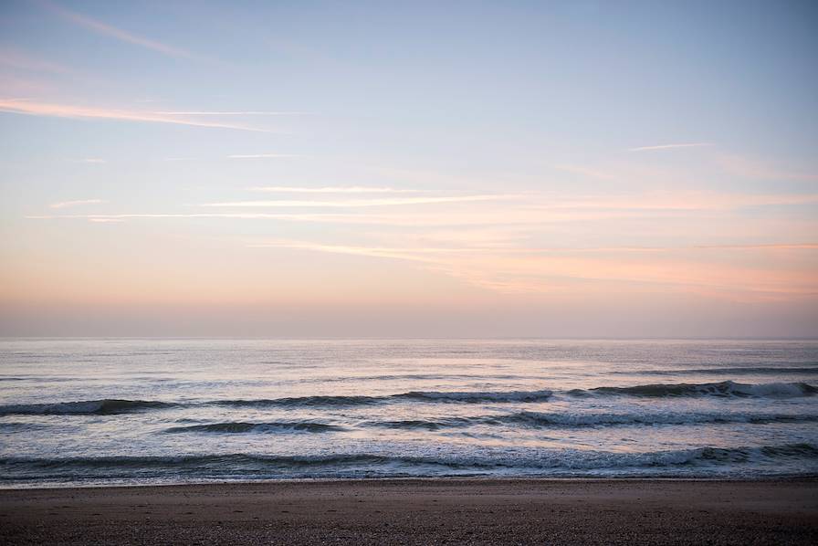 Route pour Amelia Island, au nord-est de Jacksonville. Installation pour deux nuits dans une vaste bâtisse victorienne posée en retrait de la plage, sur laquelle sont disposés transats et parasols réservés aux hôtes. Dans les chambres, les espaces sont aérés. Tout comme les vues sur la mer. Pour le reste, on bouquine au salon, on lézarde sur le sable, on sirote un apéritif sur le porche au coucher du soleil...