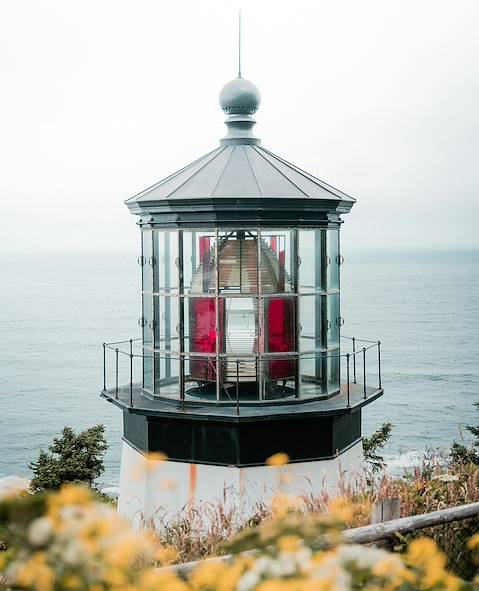 Route vers le sud – l'occasion d'admirer les différents phares qui se dressent fièrement le long de la côte. Celui de Yaquina Head, majestueux, apparaît perché au sommet d'un impressionnant promontoire basaltique. Avec 28 mètres de haut, il s'agit du plus haut phare côtier de l'État. Celui d'Heceta Head, adossé à une forêt, est inscrit au Registre national des lieux historiques – il est en fonctionnement depuis 1894 et toujours équipé de la lentille de Fresnel d'origine, illuminant à 21 miles à la ronde – tout bonnement le phare le plus puissant d'Oregon. L'ancienne maison du gardien abrite désormais un bed & breakfast. On profitera de se trouver dans les parages pour aller admirer l'épatant pont de Cape Creek et s'émerveiller devant les superbes vues marines. Autre phare emblématique de cette portion de côte, le Cape Blanco Lighthouse surplombe l'océan depuis le sommet des falaises du parc national éponyme. Du haut de la tour, la vue panoramique est pour le moins mémorable.
