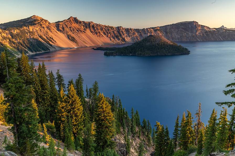 À ne pas manquer - Le Rim Drive, route de 50 kilomètres dévoilant de superbes vues sur Crater Lake, lac le plus profond des États-Unis – il faut compter deux heures pour faire le tour du lac en voiture. Et si la route promet déjà de beaux panoramas, c'est à pied qu'on adopte les meilleures perspectives sur ce lieu hors du commun. Des sentiers descendent jusqu'au lac, s'ouvrant sur Wizard Island, traversent des forêts de pins, longent le cratère ou, plus ambitieux, visent les sommets et des vues dégagées (par temps clair) sur les monts Shasta, en Californie. Quant aux moins frileux, ils pourront tenter une baignade lacustre des plus... revigorantes !