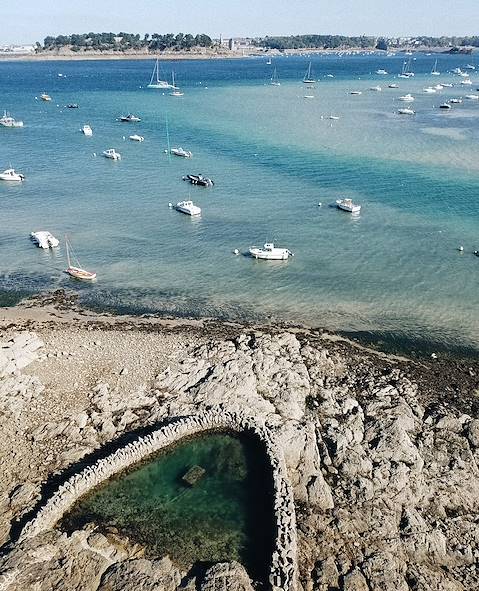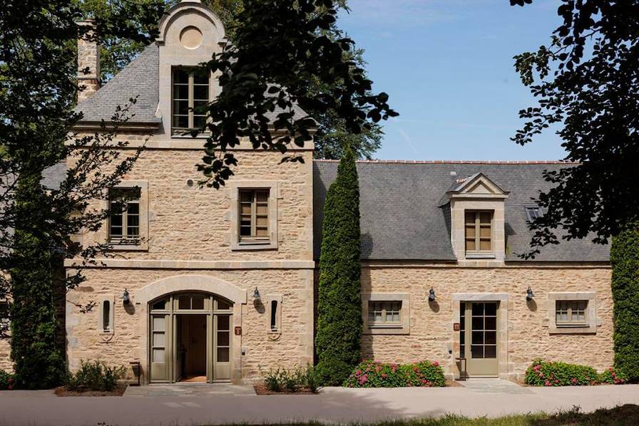 Route vers Lorient et installation pour deux nuits à une quinzaine de minutes du centre-ville, au sein d'un superbe domaine arboré de plus de vingt-cinq hectares jouissant d'une vue épatante sur la ria du Blavet. Un environnement paisible où trônent quatre bâtisses pleines de cachet : un château du XIXe siècle, une orangerie, un manoir breton du XVIIIe siècle ainsi que les écuries. Toutes possèdent une atmosphère propre mais ont en commun élégance et confort sans faille. Votre chambre, située dans le château, renvoie avec subtilité à la route des Indes à travers des éléments chinés aux quatre coins du monde – lit à baldaquin indien, riches tissus brodés – associés à des pièces contemporaines. Les anciennes écuries hébergent désormais le spa, très complet, et sa piscine chauffée de dix-sept mètres. Deux restaurants font aux hôtes des propositions singulières, sous la houlette d'un seul et même chef talentueux. Au rez-de-chaussée du château se trouve le bistrot de la maison, ouvert sur le jardin. On y sert une cuisine gourmande et de saison puisant dans un répertoire classique réconfortant. La seconde table, récompensée d'une étoile par le guide Michelin, propose une véritable expérience gastronomique tournée vers la mer et le riche terroir breton. Encornets, huîtres, langoustines mais aussi pintade, agneau, chou-fleur et artichauts sont convoqués par cette cuisine de tradition raffinée, rendue possible grâce à de petits producteurs locaux triés sur le volet. Les desserts, classiques ou inventifs, sont l'œuvre d'une cheffe pâtissière émérite.