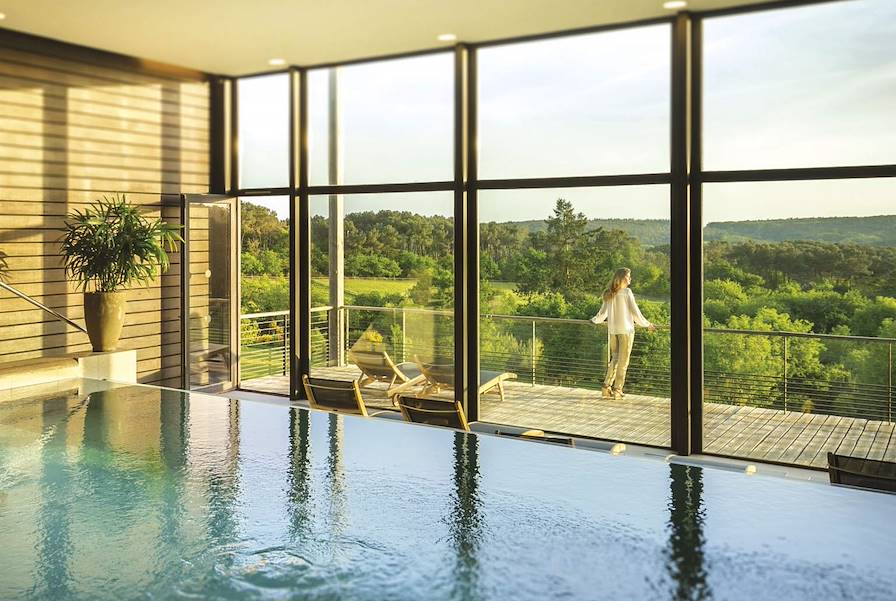 Route pour le village de La Gacilly et installation pour la nuit dans un éco-hôtel habilement conçu au moyen d'élégantes matières naturelles et pensé pour avoir un impact minimum sur l'environnement – toits végétalisés, panneaux photovoltaïques, chaudière au bois, récupération des eaux de pluie, jardin filtrant... La campagne bretonne s'invite à l'intérieur des chambres, cosy et aux teintes douces, grâce à de grandes baies vitrées. Le spa prodigue de délicieux soins bio. Quant au restaurant, il file la même métaphore.