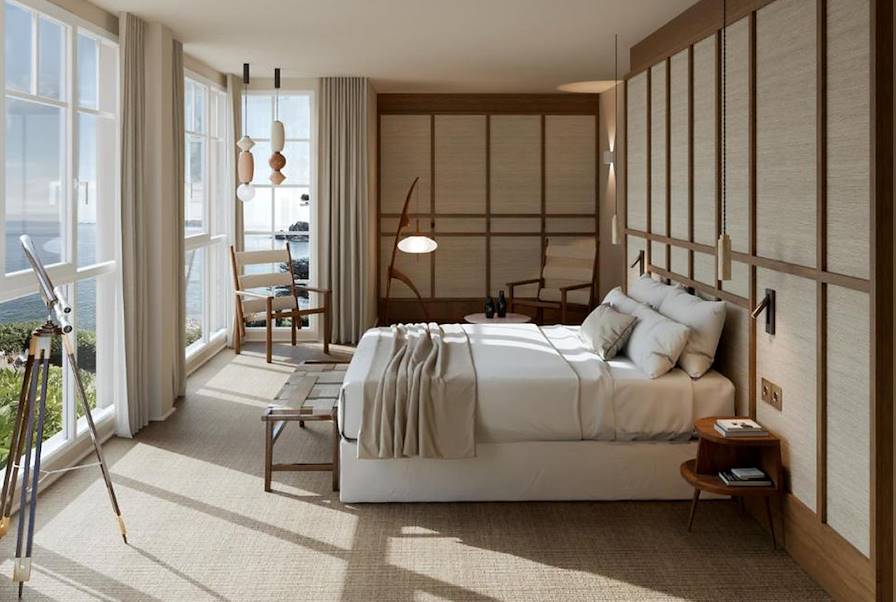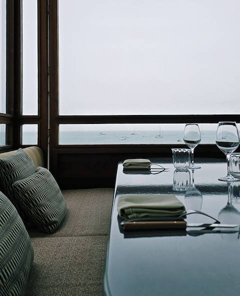 Poursuite de la route vers Perros-Guirec et installation pour deux nuits au sein d'un petit hôtel occupant les murs d'une très jolie bâtisse du début du XXe siècle en surplomb de la plage. Autant dire que les vues sur la Manche sont plutôt enviables. Votre chambre en profite d'ailleurs allègrement, ainsi que d'un confort à toute épreuve et d'une décoration contemporaine aux teintes douces, faisant des références extrêmement subtiles à l'environnement marin. Le spa respire lui aussi l'iode et l'air vivifiant de la mer – on se la coule douce dans le sauna et le hammam entre deux soins et massages. En attendant le goûter breton, servi chaque jour, on va flâner du côté de la boutique, riche d'une très belle sélection d'artisanat local – mosaïques, céramiques, luminaires, mobilier. Cerise sur le gâteau, l'établissement s'est doté d'une table à son image : esthétique, raffinée et fortement tournée vers le large. On revisite ici les saveurs bretonnes traditionnelles. Les coquillages – huîtres, palourdes – et crustacés ont la cote et font l'objet d'un traitement spécial (marinés, fumés, snackés...). La carte évolue au gré des marées, des saisons et des inspirations de la brigade. On ne s'étonnera pas d'y trouver cabillaud, sarrasin, coco de Paimpol ou lait Ribot, produits phares du terroir. Le cadre, sobre mais chaleureux, laisse toute leur place aux panoramas marins qui filtrent à travers les grandes baies vitrées. Le bar, au diapason, invite la Bretagne dans le shaker – gin infusé aux algues, essences d'agrumes bretons. Dès l'apéritif, le ton est donné.