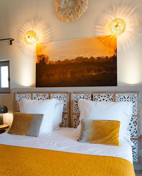 À l'arrivée, installation pour trois nuits dans un mas longiligne dissimulé au milieu des marais où nichent de nombreux oiseaux durant la période de reproduction. Joliment intégrée à son environnement naturel, l'élégante bâtisse a été restaurée par des amoureux de la région au moyen de matériaux durables. À l'intérieur, des espaces chaleureux et une poignée de chambres douillettes à la décoration soignée. Partout, de larges baies vitrées laissent entrer la lumière. On prend beaucoup de plaisir à lézarder sur les différentes terrasses de la propriété et dans la petite cabane postée au bord des marais.