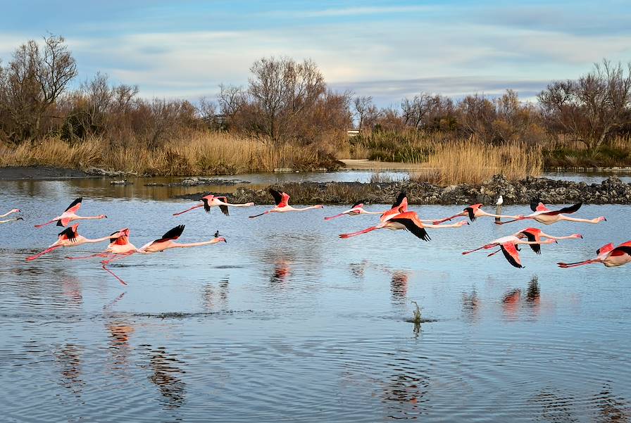 À ne pas manquer - Le parc ornithologique du Pont de Gau. À quelques kilomètres des Saintes-Maries-de-la-Mer, ce site naturel protégé permet de se frotter à la Camargue la plus sauvage. Là, sur plus de 60 hectares de marais, étangs et roselières, vivent une incroyable diversité d’oiseaux dont les fameux flamants roses, figures emblématiques des cartes postales camarguaises. Des sentiers aménagés invitent les visiteurs à évoluer au sein de cet écosystème fragile se prêtant parfaitement à une promenade contemplative – le silence est de mise si l'on souhaite multiplier les rencontres avec la gent ailée, ici chez elle.