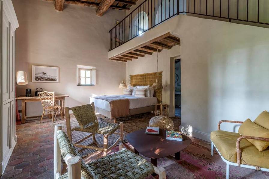 Vous posez vos valises pour trois nuits au sein d'une propriété provençale du XVIIIe siècle. Admirablement rénovée, elle n'a en rien perdu de son cachet historique et les différentes pièces de la grande maison font montre d'atouts esthétiques certains : poutres et pierres apparentes, voûtes, portes anciennes au bois patiné par le temps. Il règne ici une merveilleuse sérénité et une appréciable fraîcheur. Au centre du patio intérieur, véritable poumon, trône un figuier centenaire tandis que, près de la piscine, grimpe un jardin provençal en terrasses appelé restanque ici-bas. Un lieu qui fleure bon – déjà – les essences méditerranéennes et les siestes ensoleillées. Dans les chambres, une plus grande clarté encore qu'ailleurs, la plupart ouvrant leurs fenêtres sur la campagne ou le paisible village. Au sol, souvent, d'intemporelles tomettes habillées ici et là de jonc de mer. Les meubles, tantôt anciens, tantôt design, terminent de conférer à chaque chambre une atmosphère qui ne verse pas dans les clichés méridionaux.