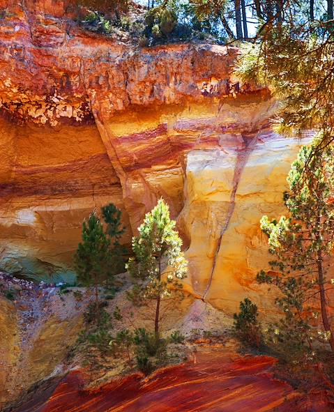 Le Luberon réserve bien des surprises à qui veut bien se donner la peine de l'explorer en profondeur. Du côté du Pays d'Apt se trouvent par exemple des paysages arides et escarpés couverts de terre orangée : le Colorado provençal. Anciennes carrières d'ocre en activité aux XIXe et XXe siècles, cet étonnant décor évoquant l'Ouest des États-Unis a été façonné autant par l'activité humaine que par l'érosion naturelle et les éléments. La végétation, en raison de la nature particulière du sol, est elle aussi très singulière. Sur place, on peut encore observer quelques bassins de décantation et rigoles. Deux sentiers pédestres sillonnent les lieux. Le circuit du Sahara (2,1 km) porte bien son nom – on y évolue le long de chemins de sable aboutissant à d'impressionnants fronts de taille présentant des strates de différentes couleurs. Le circuit des Belvédères, plus long (3,9 km), surplombe lui l'ensemble du site, s'ouvrant sur un panorama épatant de cheminées de fées.