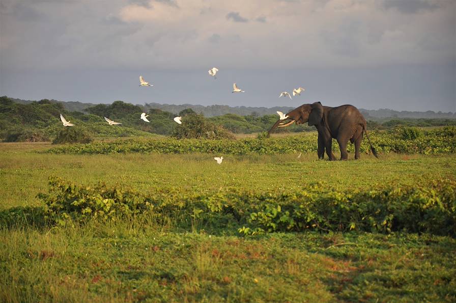 Avec ses 155 000 hectares de forêt tropicale, de savane, de plages immaculées et de lagunes, le parc national de Loango est un véritable écrin de nature allongé au bord du golfe de Guinée. Il est particulièrement réputé pour être un sanctuaire pour gorilles, oiseaux et éléphants qui prennent un grand plaisir à se baigner dans l'océan. Votre camp se trouve lui à l'extrême nord-ouest du parc qui, à la saison verte, aimante aussi buffles de forêt et singes à l'instar du céphalophe à dos jaune et du mangabey à tête rouge, sans oublier les multiples espèces végétales et animales de la lagune d'Iguela, réserve marine d'une grande richesse.