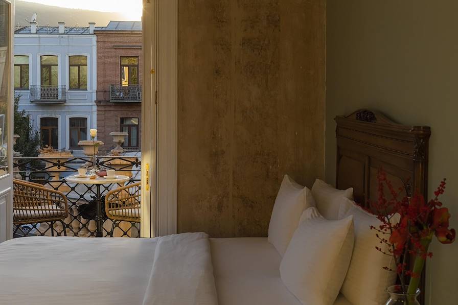 Il se situe sur la rive est de la Koura, dans le quartier animé de Chugureti, riche en commerces, bars et restaurants. Il s'agit d'un établissement à taille très humaine (moins de quinze chambres) qui occupe un élégant bâtiment datant de 1905 dont le charme originel – un certain glamour caucasien – transpire encore un peu partout. La restauration a en effet interprété avec finesse l'opulent décorum Belle Époque, tout en s'adaptant aux exigences d'aujourd'hui en termes de confort. Les chambres, lumineuses et très joliment décorées, possèdent toutes une atmosphère, un certain esprit. Sans mettre un pied dehors, on jouit, sur place, d'une très bonne table géorgienne, de cours de yoga et d'un spa proposant soins et massages.