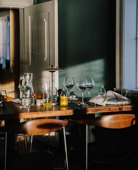 Déjà prévu - Dîner bistronomique dans une adresse réputée du vieux port, un ancien magasin du XIXe siècle relooké en chaumière baroque au moyen de peaux de bêtes, mobilier dépareillé, bougeoirs rococo, vitraux luthériens, luminaires cuivrés et d'une immanquable cheminée. Il s'agit d'un vrai restaurant d’auteur situé sur le versant islandais et poissonneux de la nouvelle cuisine nordique, ici personnifiée par un chef créatif à souhait. Tartare de langoustine, pickles de granny, neige de truite et concombre (glacés à l’azote), filet de flétan géant grillé, purée au kale torréfié, émulsion de topinambour aux algues, cookie au malt sombre, granité d’oseille de terre, meringue verte... Même inventivité dans les verres, la carte des vins étant aussi globe-trotteuse qu'elle est pointue.