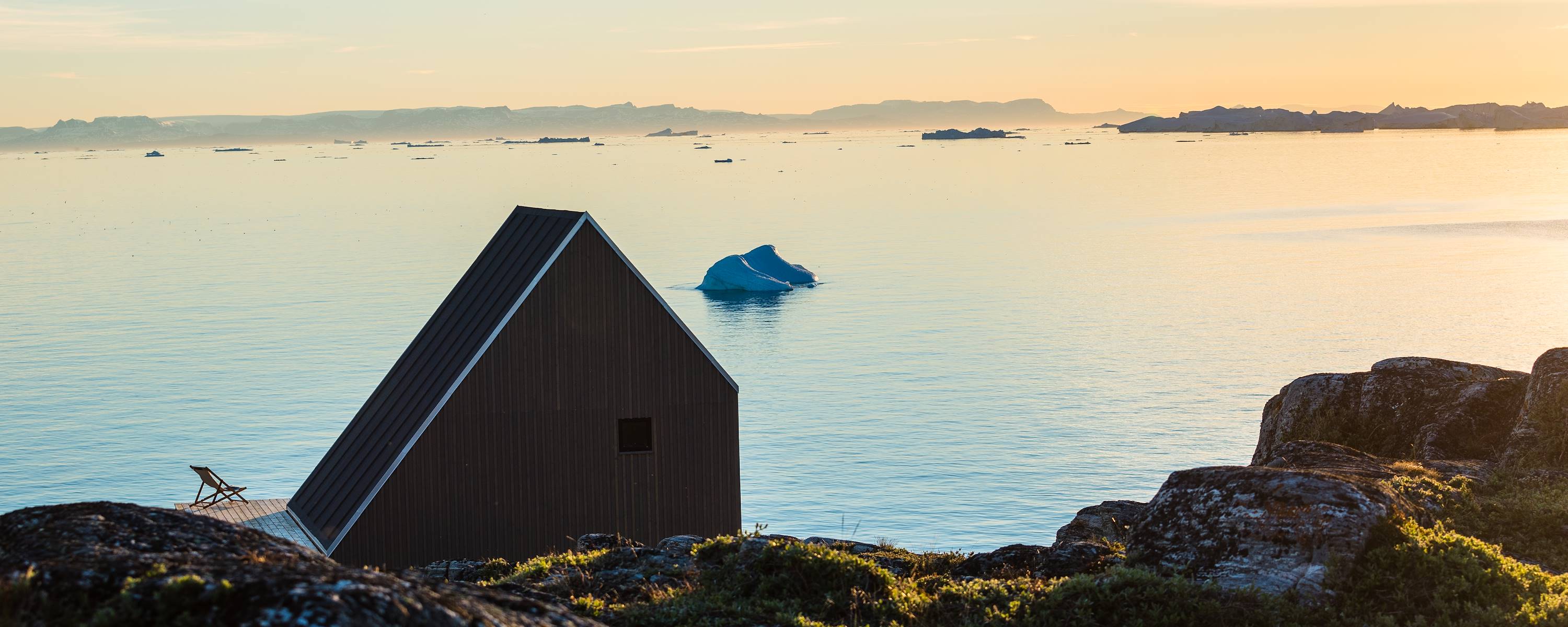 Notre suggestion, en fin de journée - Siroter un cocktail composé de gin groenlandais et d'herbes arctiques sur la terrasse avec vue sur la baie de Disko. Définitivement l'un des lieux les plus marquants au monde.