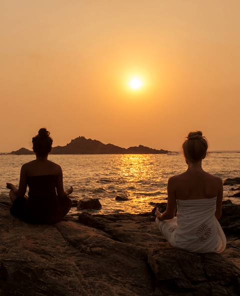 Le yoga est un autre pilier de votre séjour ayurvédique. Emprunté au sanskrit jog (lier, relier), le terme désigne une discipline qui ambitionne de lier les trois plans de l'être : le corps, le mental et l'esprit. Ainsi uni, on serait en mesure de trouver en soi, quels que soient les facteurs extérieurs, un lieu de paix et de tranquillité – une sorte de source à laquelle se connecter à tout instant. À l'instar de l'ayurvéda, le yoga prendrait ses racines en Inde. D'abord transmis "au pied du maître", c'est-à-dire oralement, la pratique aurait été couchée sur le "papier" il y a 2000 à 3000 ans avec le texte de référence Les Yogas Sutras de Patanjali, dont les vers sont d'une actualité déconcertante. Pour s'adonner à cette discipline nécessaire au recentrement, plusieurs yoga shalas, maisons "où le yoga est partagé et expérimenté", ont été aménagées au cœur de votre hôtel. L'une est posée sur le sable, face à la mer d'Arabie. L'autre perchée sur une falaise, dévoilant un panorama littoral superbe. Disciples chevronnés de yoga, vos instructeurs en maîtrisent plusieurs formes : Yoga Asanas, Pranayama, Yoga Nidra...