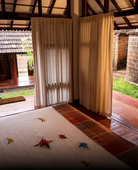 Avant d'entamer votre cure ayurvédique – et votre renaissance – à Gokarna, c'est à Goa que vous vous initiez à l'Inde. Ville hindoue parsemée de temples,  cette dernière affiche avec grâce son patrimoine colonial. Des siècles plus tard, l'héritage portugais continue en effet d'habiller les façades du quartier de Fontainhas, les églises et les couvents de l’Old Goa. La ville, dont les rues fleurent bon les épices, est aussi empreinte d’une douceur de vivre bien à elle. Et, malgré une notoriété certaine, on y trouve encore des coins préservés, des plages paisibles et des impasses secrètes. En prélude à un séjour régénérant, on se nourrit de cette atmosphère inclassable et insaisissable, qui plaît autant aux hippies qu’aux stars de Bollywood, qui se prête aussi bien aux fêtes sans fin qu’aux retraites spirituelles. Afin que vous jouissiez de ce lieu unique, nous avons sélectionné pour vous une adresse dont seul le charme égale la tranquillité. Entre les cottages et la mer, il n'y a qu'un pas… et quelques palmiers dont la courbure semble refléter l'esprit des voyageurs de passage. Côté programme, une demi-journée dans Goa avec un guide francophone vous fournit les bases pour ensuite aborder la cité en liberté, menés par un chauffeur qui vous est entièrement dédié. Alors seulement vous ralliez Gokarna, étendue le long d’une plage frangée d’une cocoteraie, un décor qui succède en douceur au chant du vent dans les rizières. Là vous attend un bungalow bâti dans un style d’inspiration konkanaise, prolongé par une salle d'eau partiellement ouverte au ciel. Ainsi qu'un renouveau en bonne et due forme. Notez que, au fil de votre aventure indienne, premier volet comme second, vous pouvez compter sur l'assistance de notre équipe de conciergerie francophone à destination pour répondre rapidement aux envies soudaines et éventuels contretemps – elle est joignable à tout moment du voyage.