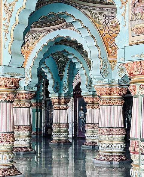 Ce périple vous invite à entrer en douceur dans l'Inde du Sud, avec, pour fil rouge, les temples sacrés de l'hindouisme. On se plonge dans le Karnataka, pour s'immerger dans une Inde profonde et spirituelle. Un État-pays à lui tout seul : montagnes, plateau du Deccan et la région costale de Karavali. On y refait l’histoire. En ouverture, Mysore qui a vu se succéder les dynasties. Construit en 1907, le somptueux palais du maharadja, de style indo-musulman, reste, avec le Taj Mahal, l’un des plus beaux exemples du faste indien. On chemine ensuite vers Hassan et le temps de la gloire des Hoysala. On flâne dans ses anciennes cités : Halebid, bourgade pittoresque, et Belur, des temples dansants, échantillons subtils de l’esprit indien. Passage obligatoire par les chefs-d’œuvre de Hampi, préservés sur le site d’une ancienne capitale, Vijayanagara, l’Angkor local. La région multiplie les vestiges de différents courants religieux, comme en témoignent les sanctuaires troglodytiques de Badami, qui ferment le cycle du Karnataka. Déjà, l’appel du littoral se fait sentir – celui de Goa est irrésistible. On y trouve une histoire portugaise, coloniale, parfumée ; heureux mélange de cultures indienne et latine. Devenue au fil des années le repaire des fashionistas et des jeunes créateurs de la nouvelle vague indienne, la ville n’en a pas perdu pour autant son cachet, ses recoins secrets préservés des foules et ses maisons typiquement goanaises. On y coule des heures heureuses, empreintes d’une décontraction extrême. C’est dans cette douceur de vivre que prend fin ce périple fort en découvertes.