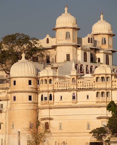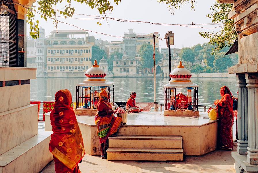 Au fil des vallées et collines, route pour Udaipur, tantôt "cité de l'aurore", tantôt "ville des princes du soleil", incontestablement la cité la plus romantique du Rajasthan. L'arrivée sonne l'heure des adieux au chauffeur – vous repartirez d'Udaipur en avion. Installation pour deux nuits sur les rives du lac Pichola, à un quart d'heure du centre-ville. De cet emplacement stratégique en surplomb de l'eau, on peut admirer Jagdish Temple, Gangaur Ghat, Lake Palace, Jag Mandir ou encore Sajjangarh Fort. Ancien havelî, l'adresse présente une architecture délicate, ciselée dans du granit blanc. Les corridors s’ouvrent sur des arches dentelées, des dômes légers, des pavillons ou des tourelles en forme de clochetons. Confortables, les chambres donnent sur le lac. Et le restaurant est un incontournable pour la bourgeoisie locale.