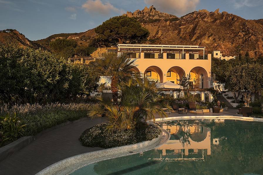 Installation pour deux nuits sur l'île de Stromboli même, à cinquante mètres du port. Qui n'a jamais rêvé de dormir au pied de l'un des volcans les plus actifs d'Europe ? Non content de bénéficier d'une vue imprenable sur le puissant sommet, l'édifice qui vous accueille, à l'architecture éolienne, tutoie la plage de sable noir de Scari, au creux d'un ancien bourg de pêcheurs. L'ensemble est entouré d'une centaine d'arbustes méditerranéens, imprégnant l'air de parfums de genêts et d'ajoncs. Par-delà le cadre, on apprécie les chambres agrémentées d'un mobilier artisanal en bois aux couleurs pastel. Surtout, c'est un point de départ idéal pour s'élancer sur les pentes du Stromboli ou savourer un déjeuner sur la terrasse de l'un des restaurants du village. Avec, toujours, une vue au choix sur la mer ou le volcan – on sait pour laquelle les ados opteront !