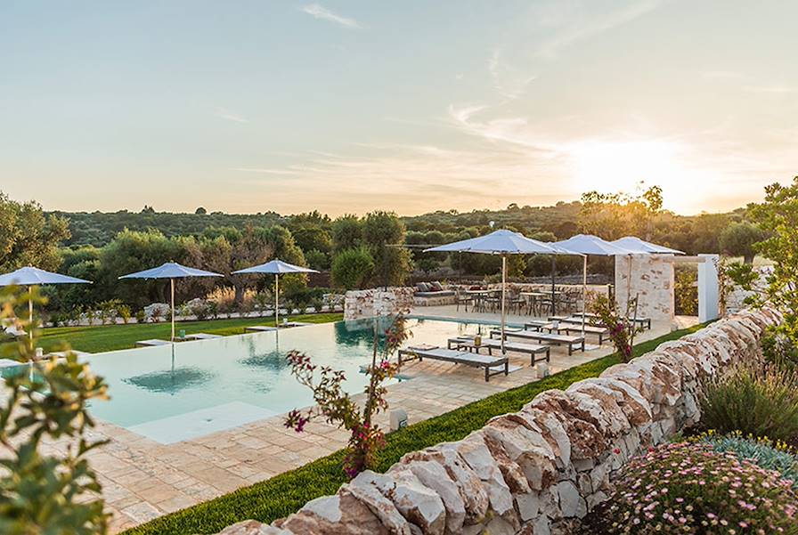 À l'arrivée à Cisternino, on prend ses quartiers pour trois nuits dans un trullo – mur circulaire de pierre blanche et chapeau pointu de pierre sèche. Votre hôtel est en effet constitué de plusieurs de ces édifices pastoraux emblématiques des Pouilles. C’est beau en soi mais, en plus, la pureté vernaculaire s’accorde très bien avec le design contemporain minimaliste. Les matières sont de toute beauté, les tons naturels. Bref, on y est bien logé, avec tout le confort voulu et, en prime, le sentiment justifié de toucher à la vérité du pays. Le chef fait du restaurant une table digne de ce nom ; sa cuisine exprime toute la finesse dont ce terroir est capable. La piscine extérieure invite au délassement, tout comme le spa de la maison. Les vélos prêtés aux hôtes annoncent de belles balades.