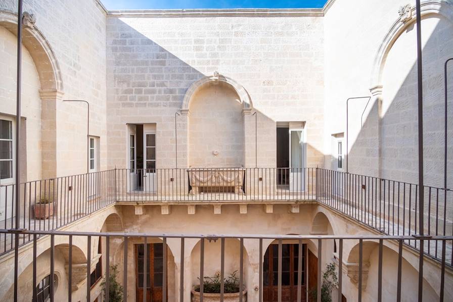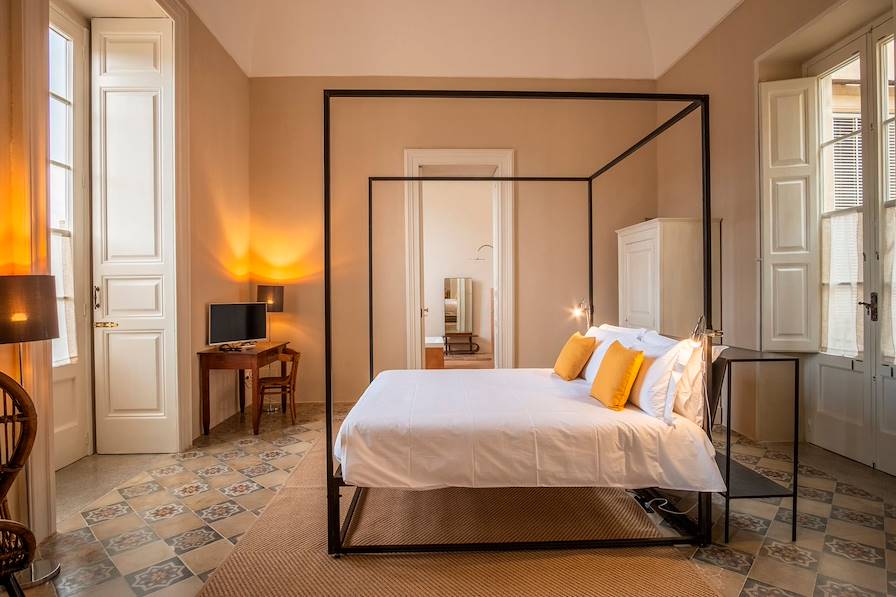 Sitôt sur les lieux, installation pour deux nuits dans le vieux Maglie, réputé pour son riche patrimoine baroque. Votre adresse n'est rien de moins qu'un palais datant de la seconde moitié du XVIIIe siècle en belle pierre blanche de Lecce. Intérieur et extérieur, il a beaucoup d'allure. La structure originelle ayant été conservée, il présente toujours de magnifique volumes. Le jeu des couleurs et de l'ameublement en fait, de façon subtile, des espaces intimes dans lesquels on est très à son aise. La décoration associe, classiquement mais avec maestria, design contemporain et éléments anciens. Une sophistication qui n'omet pas une touche de rusticité. C'est très réussi. Sur place, l'établissement dispose aussi d'un spa et, à deux pas, restaurants et cafés proposent le meilleur de la cuisine salentine.