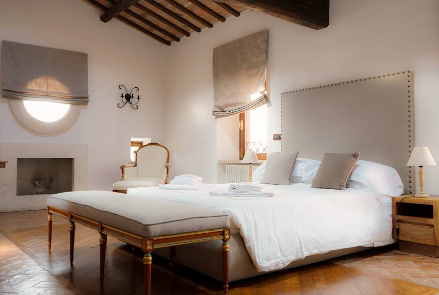 Installation pour la nuit en plein centre historique, au sein d'une demeure du XVe siècle. Au nombre de sept, les chambres s'épanouissent sous de plafonds hauts. Certains s'ornent de délicates peintures, d'autres affichent une charpente d'époque. Dans ces dernières, quelques pierres aux murs viennent compléter le cachet. L'ameublement, minimaliste et sans fioritures, permet de se recentrer sur l'essentiel : le plaisir de bien dormir. Les salles de bains répondent à la même ligne de style. Le petit déjeuner est une affaire sérieuse – et généreuse – servi dans une salle où une myriade de fenêtres laissent entrer la lumière.