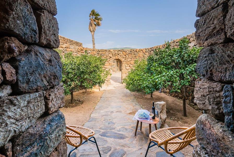 À l'arrivée, transfert privé jusqu'au port de Trapani puis traversée en hydroglisseur pour Pantelleria. Installation dans le nord-ouest de l'île. Votre adresse, une charmante tenuta en vieilles pierres, se loge dans un vignoble de quatre hectares – un cadre idéal pour un séjour reposant de plusieurs jours au contact de la nature. Vous y prenez vos quartiers pour cinq nuits. Une chose est sûre, ici, les tracas quotidiens paraissent très loin. Les plus actifs apprécient une randonnée dans la nature ou une excursion en VTT. Ceux qui visent une détente en douceur filent dans le bain à remous ou sur la terrasse panoramique. On peut aussi rejoindre le superbe lago di Venere, à vingt minutes de route, pour une baignade dans des eaux thermales à 40°C. Et pour terminer la journée en beauté, on déguste un verre de vin en observant le soleil se coucher sur les vignes.